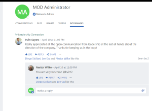 This will open the following page and you will be able to press on Bookmarks tab and check your marked conversations.