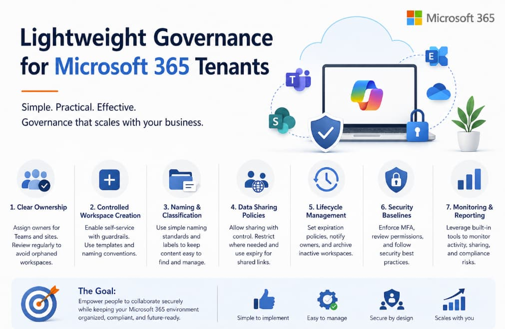 Lightweight governance is about balance. It recognizes that small-to-mid-sized organizations need structure, but not at the cost of agility. By focusing on simplicity, automation, and user empowerment, you can build a governance model that supports productivity while protecting your environment.