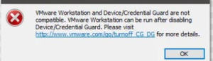 Trying to start VMware and you are getting this error message “Credential Guard are not compatible in Windows 10 “